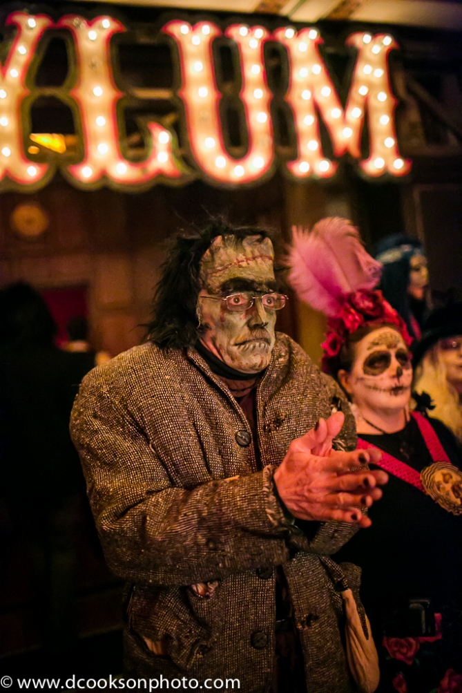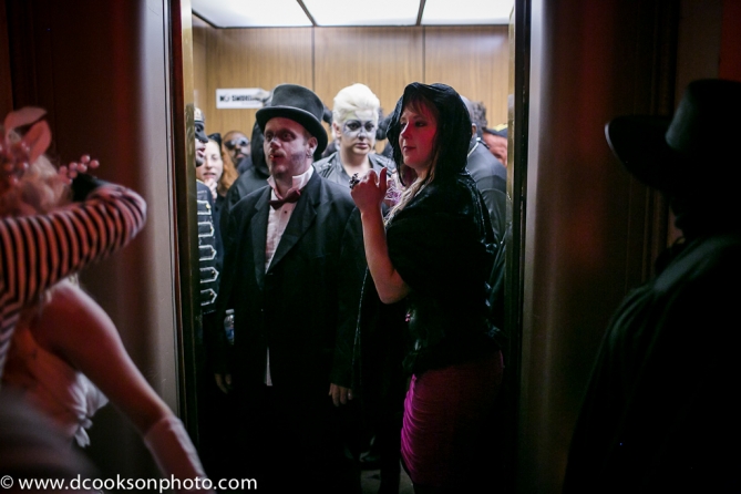 Theatre Bizarre is a One-Night-Only Celebration that happens once a year in Detroit. This year’s title was “The Summoning.” To attempt to explain it would never do it justice. (Just go HERE to their official page and read all about it and it’s colourful history..it’s practically a Detroit landmark on it’s own!). This year, my friend Miranda Hopkins (another talented photographer herself!), being a Theatre Bizarre veteran, grabbed me a ticket, and brought me along on the journey, both os uf with cameras in tow. UNFORTUNATELY, unbeknownst to me, she was not allowed inside with her camera due to an overzealous security guard who said “I’m not supposed to let those kinds of cameras in here.” Despite him NOT seeing mine, and despite there being only about 400 other cameras and cell phones inside, I was not going to let it sway me from my goal… I was a man on a mission, wearing a luchador mask and ready to record some amazingness that night! Nothing would get in my way!